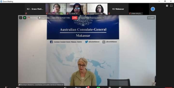 Sosialisasi Strategi Nasional Pencegahan perkawinan Anak (Stranas PPA) yang juga diikuti sejumlah pihak dari 24 kabupaten/kota di Sulsel mendapat tanggapan dari Konsul jendral Australia untuk Makassar brownyn robbins.