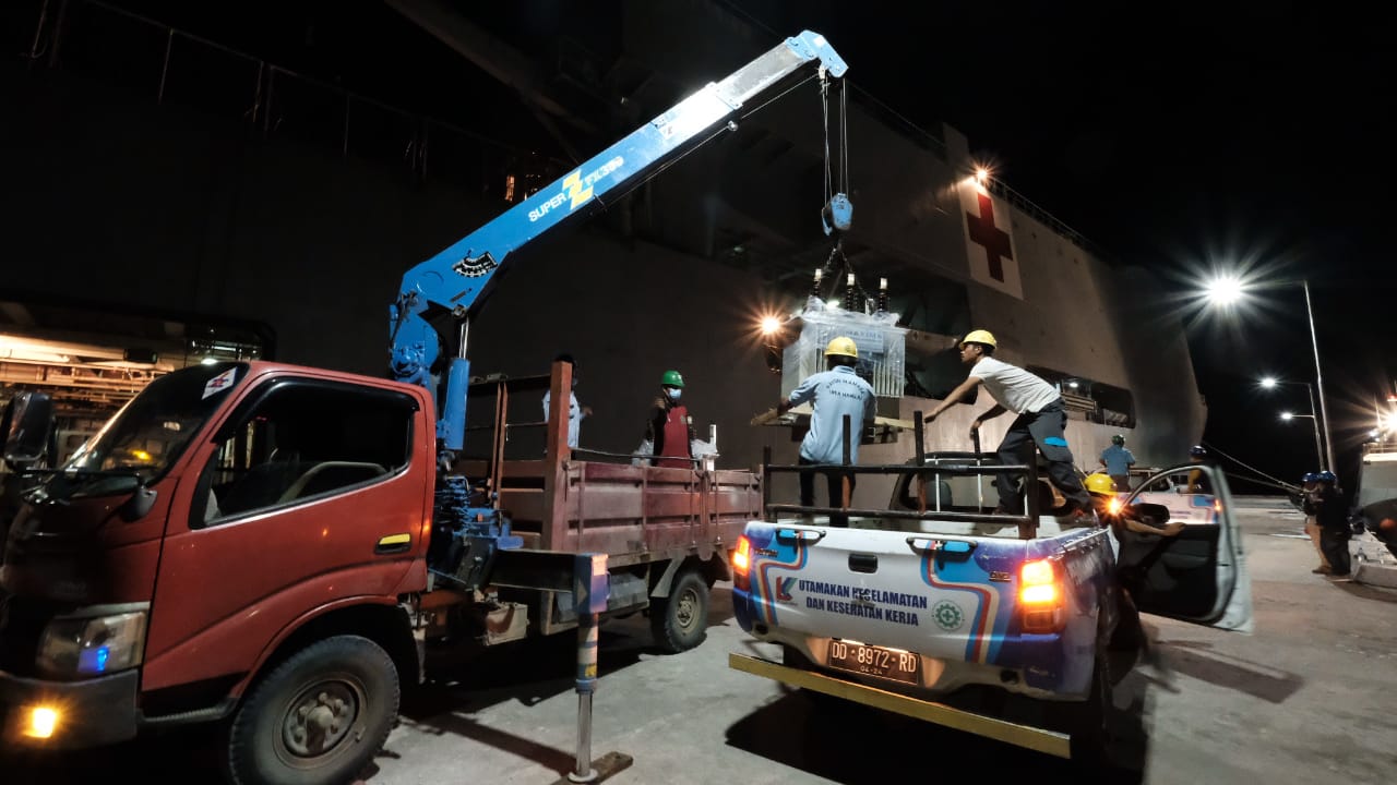Sebanyak 33 unit trafo dan 20 tiang besi tambahan milik PLN tiba di Pelabuhan Pangkalan TNI Angkatan Laut (Lanal) Mamuju, Senin (18/1) malam, setelah diangkut dari Surabaya menggunakan Kapal Rumah Sakit KRI dr. Soeharso-990. Trafo dan tiang ini akan digunakan untuk memulihkan kelistrikan pasca gempa dengan magnitudo 6,2 skala richter (SR) pada Jumat (15/01) dinihari.
