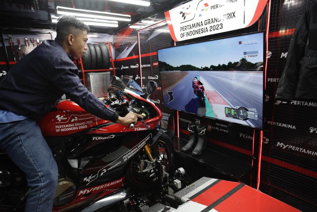 Keseruan Pertamax Turbo The Ultimate Box MotoGP hadir agar masyarakat turut merasakan balapan dengan Simulator MotoGP dengan nuansa sirkuit Mandalika. Terlihat antusias warga satu persatu mencoba merasakan langsung simulator MotoGP tersebut. Pertamina juga memberi kesempatan kepada pengunjung yang berhasil menyelesaikan 1 lap Sirkuit Pertamina Mandalika dengan waktu finish tercepat akan mendapatkan tiket nonton Pertamina Grand Prix of Indonesia 2023 kategori Pertamina Premium Grandstand Zona A.