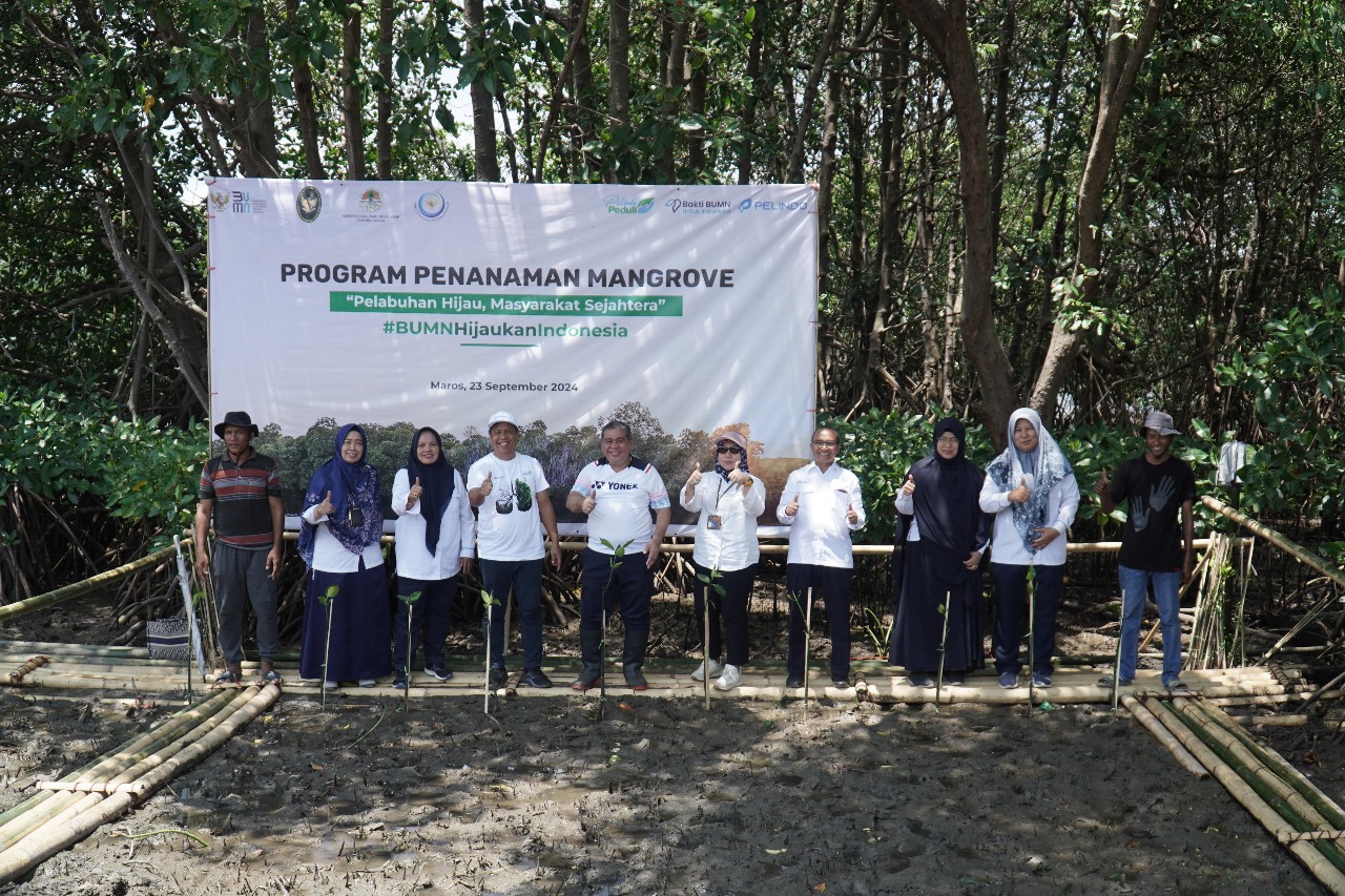 MAKASSAR, 23 September 2024 – PT Pelabuhan Indonesia (Persero) Regional 4 melakukan penanaman bibit pohon mangrove di lahan seluas 12,5 hektare di Dusun Sikapayya, Desa Minasa Upa, Kecamatan Bontoa, Kabupaten Maros, Sulawesi Selatan, sebagai bagian dari upaya konservasi lingkungan dan pelestarian ekosistem pesisir.