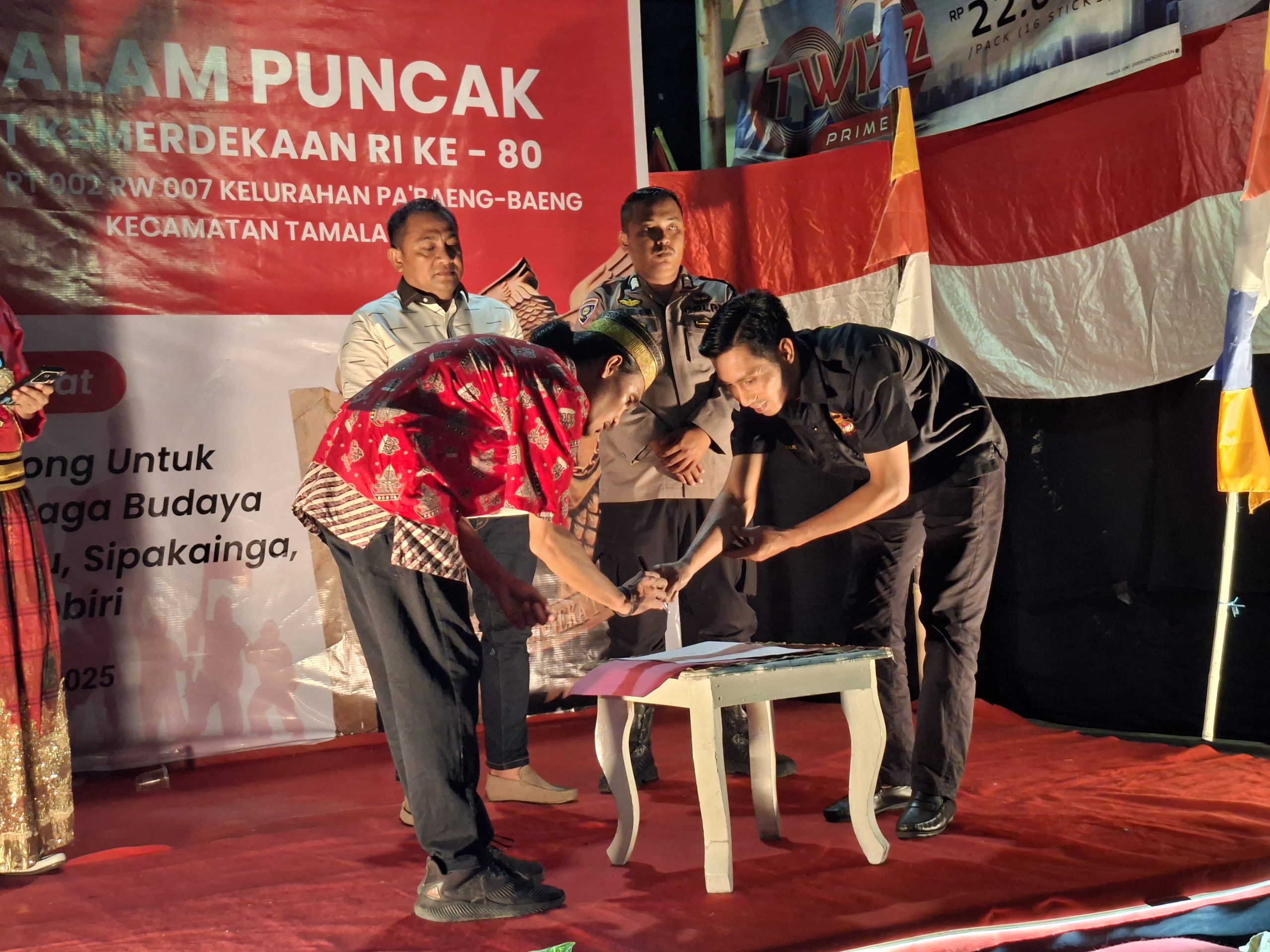 Gamasi, Makassar – Malam puncak perayaan Kemerdekaan RI ke-80 di RT 002 RW 007, Jalan Andi Tonro Lorong 1, Kelurahan Pa’baeng-baeng, Makassar, berlangsung meriah pada Rabu (27/8/2025). Acara dimeriahkan dengan hiburan, penyerahan hadiah, hingga penandatanganan MOU pemuda setempat dengan Forum Kemitraan Polisi dan Masyarakat (FKPM) yang dihadiri langsung H. Muhammad fajar selaku ketua FKPM Pabaeng-Baeng, Kecamatan Tamalate Makassar.