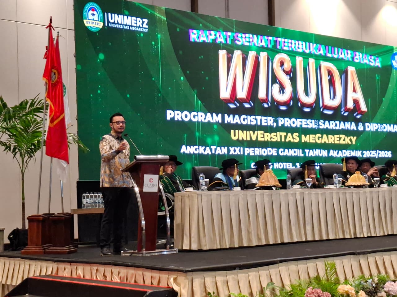 Hal tersebut disampaikannya dalam prosesi wisuda Universitas Megarezky yang mengukuhkan 663 wisudawan dari jenjang Diploma, Sarjana, Magister, hingga Profesi. Kegiatan wisuda berlangsung di Phinisi Ballroom Hotel Claro Makassar, Jalan AP Pettarani, Kecamatan Tamalate, Kota Makassar, Selasa (3/2/2026).