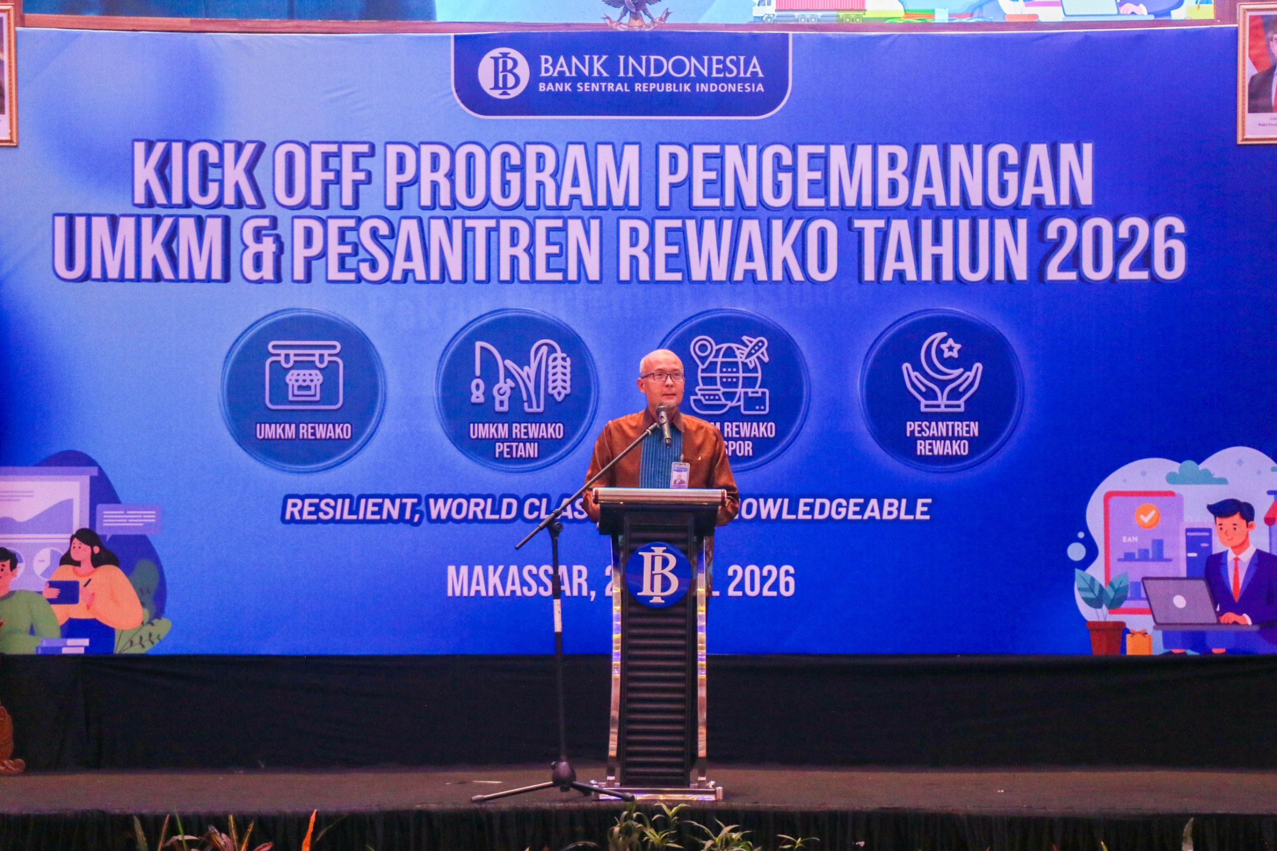 Gamasi, Makassar, 27 April 2026 – Bank Indonesia Provinsi Sulawesi Selatan resmi memulai Bootcamp UMKM REWAKO dan Onboarding UMKM Go Digital 2026 dalam Kick Off Program Pengembangan UMKM dan Pesantren REWAKO Tahun 2026 di Hotel Four Points by Sheraton Makassar, Jalan Andi Djemma, Senin (27/4/2026).